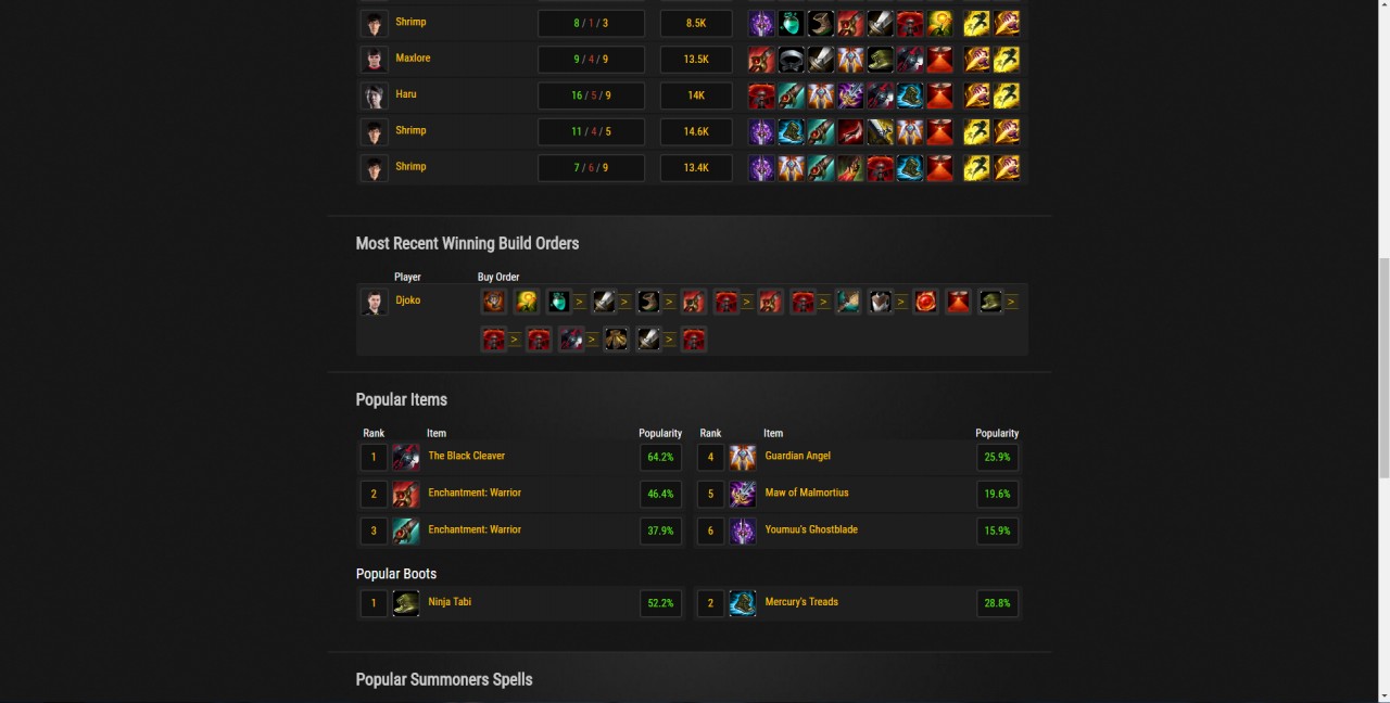 Pamiętajcie na soloq tylko i wyłącznie red smite. Gracie assasynem macie mordować a nie wardować z zielonego lub rzucać slow z niebieskiego. Butki sytuacyjne ja polecam tabi lub merkury zależnie od tego co jest w enemy teamie. The black Cleaver jest świetny na kha daję nam przeżywalność, ad i zmniejszanie armora przeciwnika jak najbardziej na plus. Youmumu warto kupić aby mieć dodatkowy movement speed by móc na niewidzialności z r szybciej podejść do targetu lub uciec. Guardian składamy gdy gra się znacząco przedłuży bo w takim etapie gry jest bym powiedział niezastąpionym itemem gdy nam coś nie wyjdzie a my będziemy chcieli uciec. Co do Maw składamy go tylko rzecz jasna gdy w enemy teamie dostajemy duży dmg od jakiegoś maga typu Syndra, Orianna itp. Warto w early game o czym zapomniałem napisać zaopatrzyć się w miksturkę do jungli tą zieloną.
